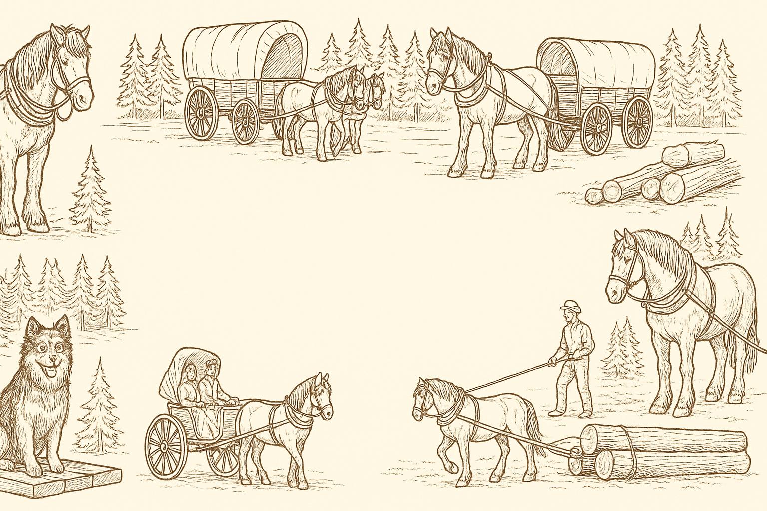 Entdecke auf meiner Seite, wie vielseitig Pferdearbeit sein kann – von Reitunterricht und Bodenarbeit über Kutsch- und Planwagenfahrten, Hochzeiten und Events bis hin zu nachhaltiger Waldarbeit mit Pferden.