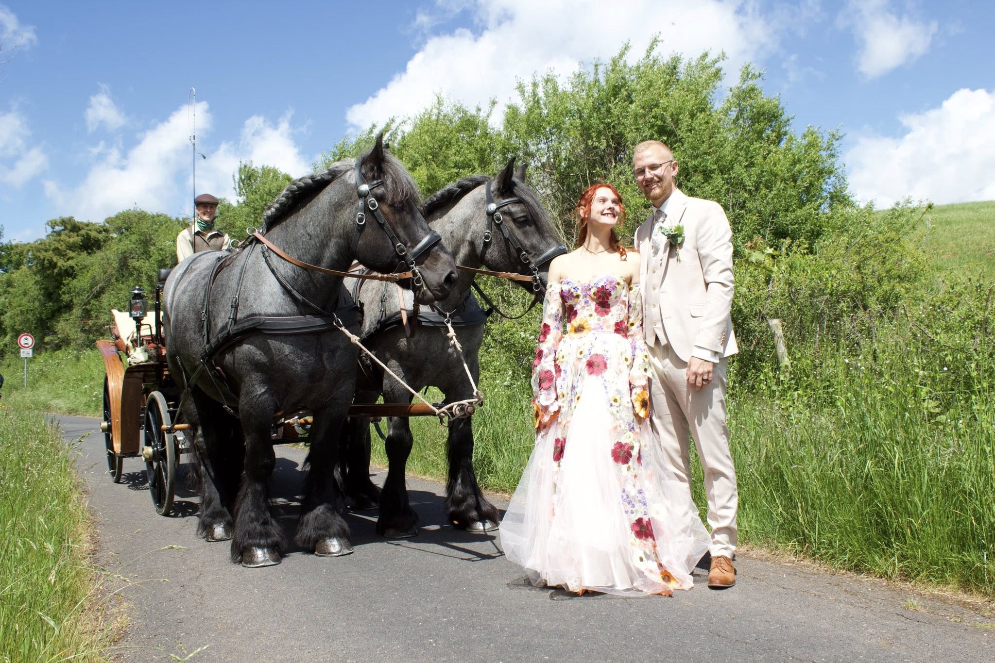 Ob festlich geschmückt vor der Kutsche oder in stiller Zweisamkeit auf dem Feldweg – diese Bilder erzählen Geschichten von Liebe, Vertrauen und einem unvergesslichen Beginn zu zweit.
